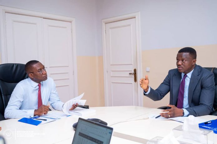 Le Ministre d’État en charge du Plan et de la Coordination de l’Aide au Développement, Guylain Nyembo, a accordé une audience, le mardi 10 février 2026, dans son cabinet de travail, au député national Joseph Nkoy. L’état d’avancement du Programme de Développement Local des 145 Territoires (PDL-145T) dans le territoire de Katako-Kombe, en province du Sankuru, a été au centre des échanges.